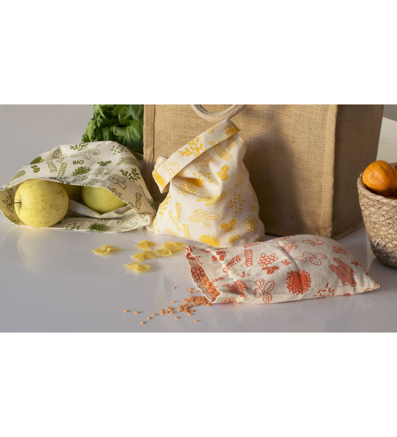 Les sacs en tissu sont une aide au quotidien pour favoriser la diminution des emballages. Que ce soit au marché, dans un magasin spécialisé ou la grande distribution, il est dorénavant aisé d'acheter en vrac. Vous pourrez alors peser puis transporter un grand nombre d'aliments dans vos sacs tissu vrac comme du thé, des légumineuses, des pâtes, du muesli, de la farine, du sucre ou même certains produits d'entretien !