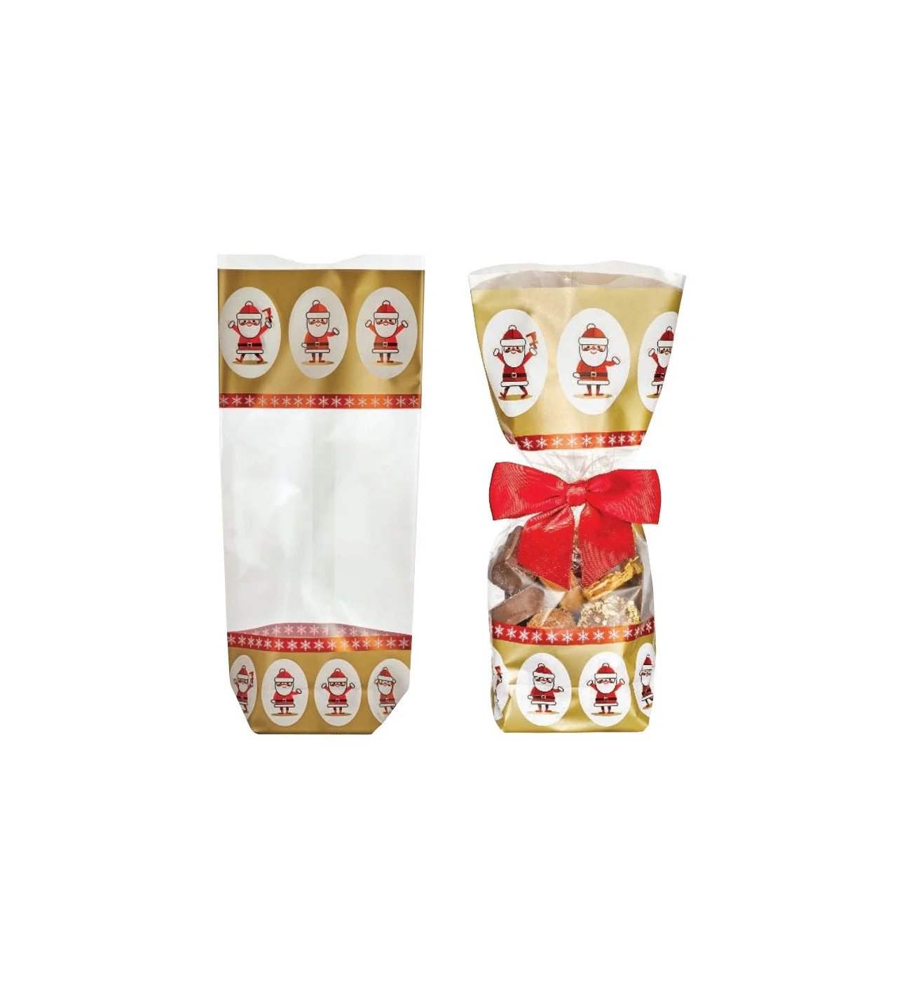 Sachet Confiserie Doré 12x26cm Père-Noël (x100)