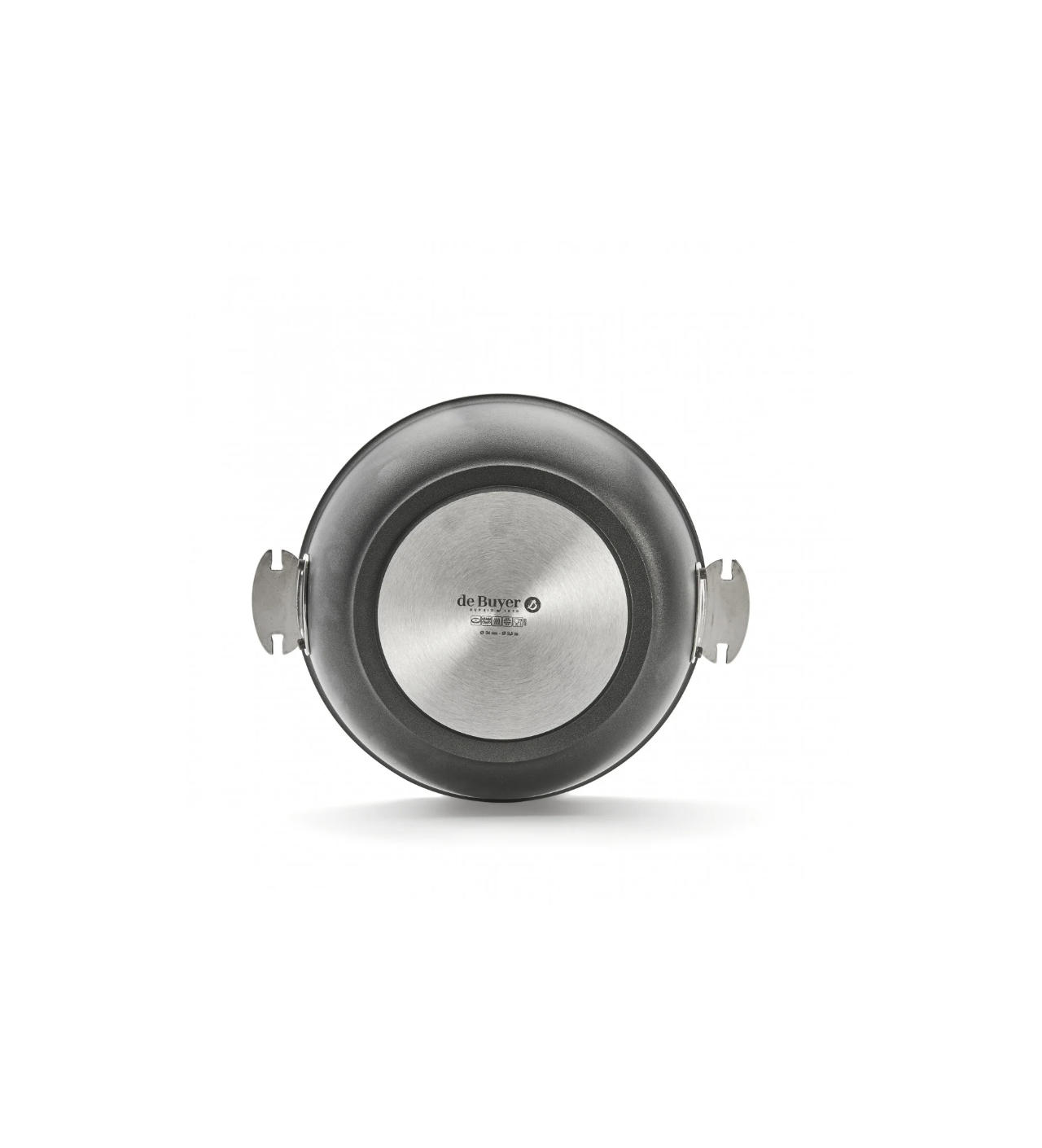 La sauteuse 24 cm est issue de la collection amovible Loqy de la gamme Choc Extrême De Buyer. Cette dernière dispose de deux embases en inox, parfaites pour y fixer des anses ou encore une poignée amovible.