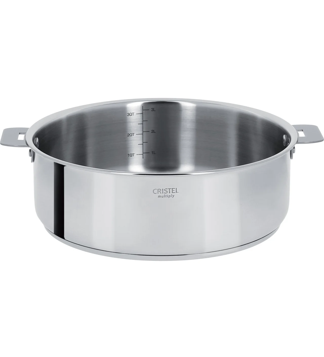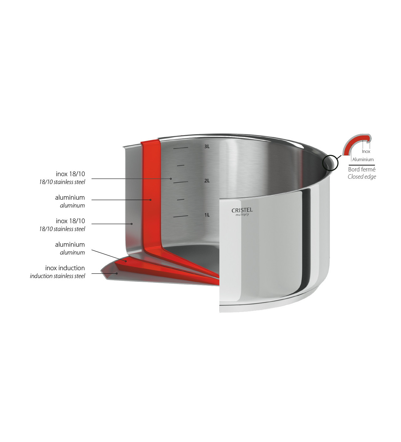 La Collection Casteline: Le meilleur de Cristel est rassemblé dans cette collection. Les ustensiles Casteline (Multiply) sont ultra performants et sont dotés d'un fond thermodiffuseur et accumulateur de 5 épaisseurs. Ainsi la répartition de la chaleur se fait uniformément sur la totalité du produit et pas seulement au fond de l'ustensile. Les produits de la collection Casteline ont une finition brillante et sont garantis Origine France.