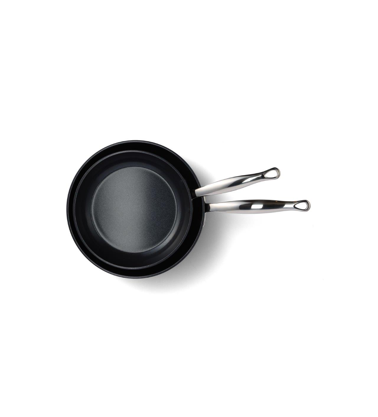 Alliant la robustesse, la qualité ainsi que l’esthétisme, ces poêles cuisine sont parées d’une teinte noir mat contrastant parfaitement avec la brillance du manche en acier inoxydable.