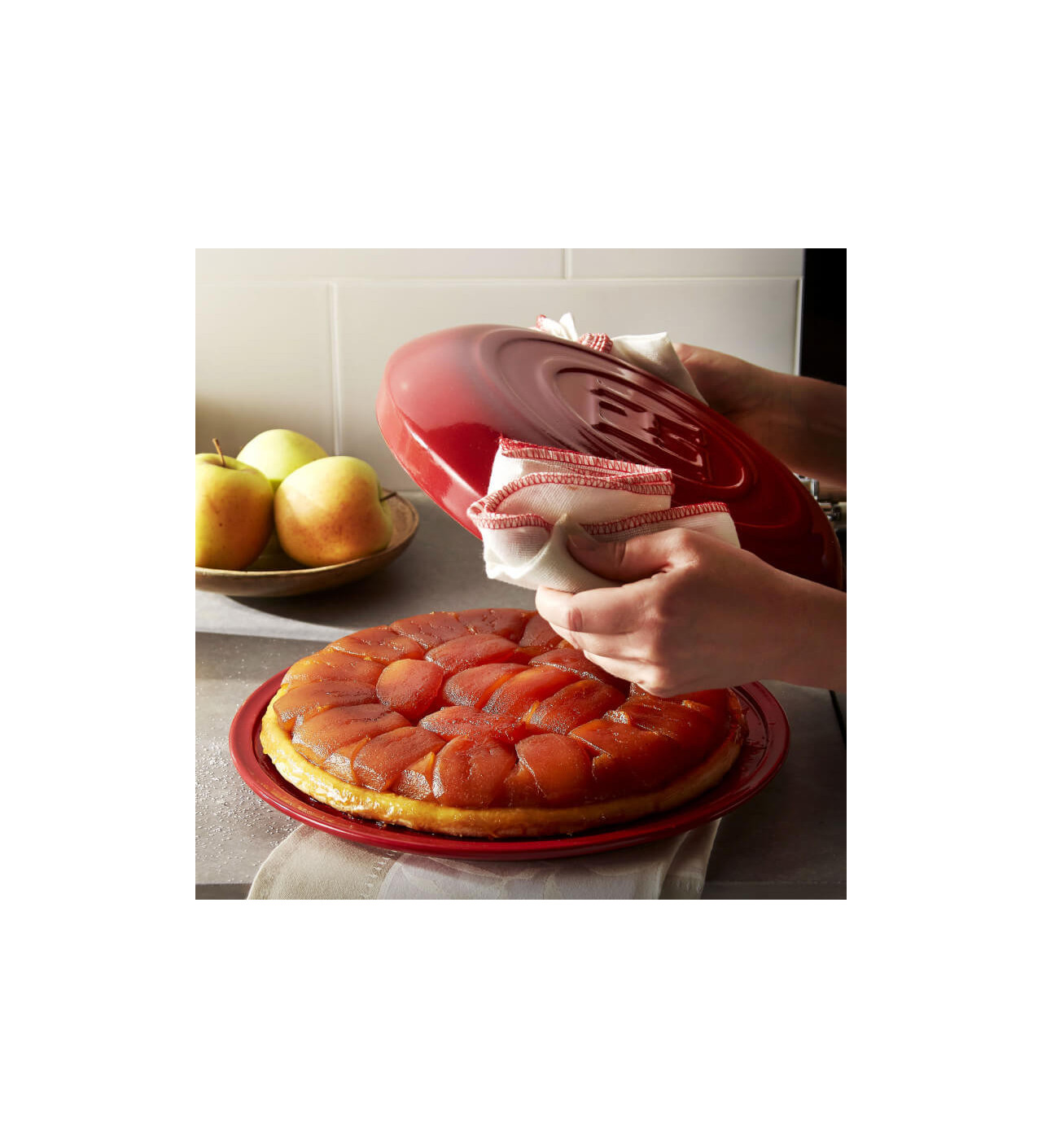Pour lui offrir un écrin à la hauteur de ses saveurs, Emile Henry a conçu en Bourgogne ce set à tarte tatin en céramique ; dont l’émail carmin réchauffe l’esthétique de vos desserts.