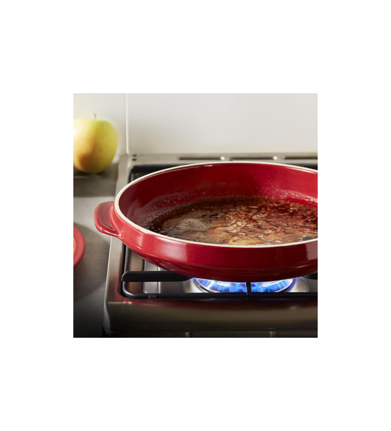 Ainsi, pour réaliser le caramel qui viendra enrober les pommes, utilisez ce moule Emile Henry directement sur le feu. La céramique est compatible avec l’utilisation du gaz mais aussi avec des plaques vitrocéramiques, halogènes et électriques.