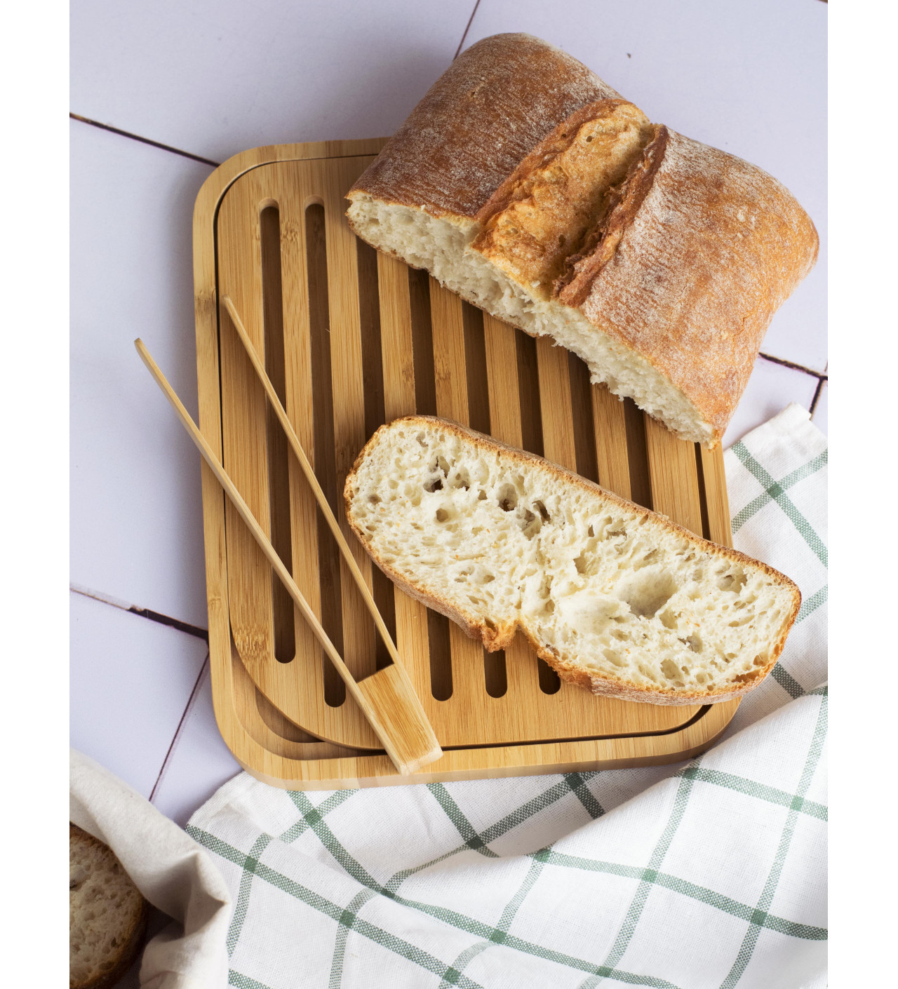 Set Planche à Pain 26 x 20 cm + Pince à Toast Bambou Pebbly