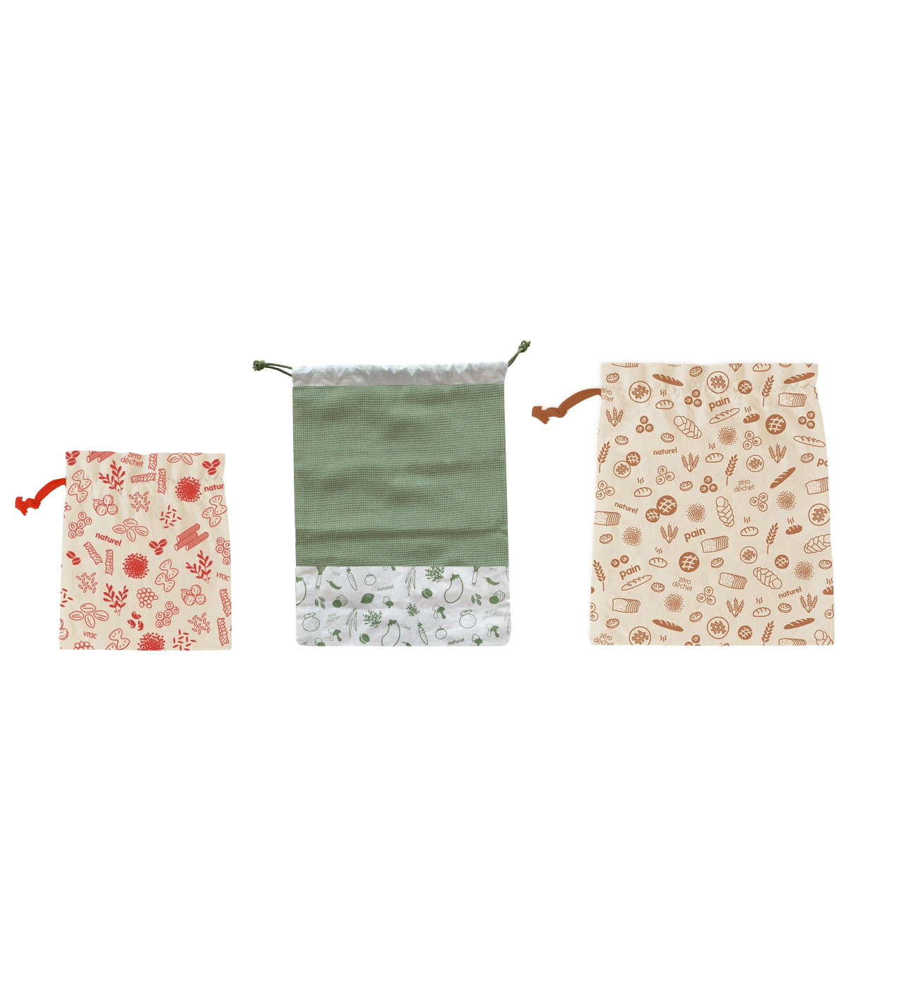 Chaque sac zéro déchet possède son motif et sa propre utilité :