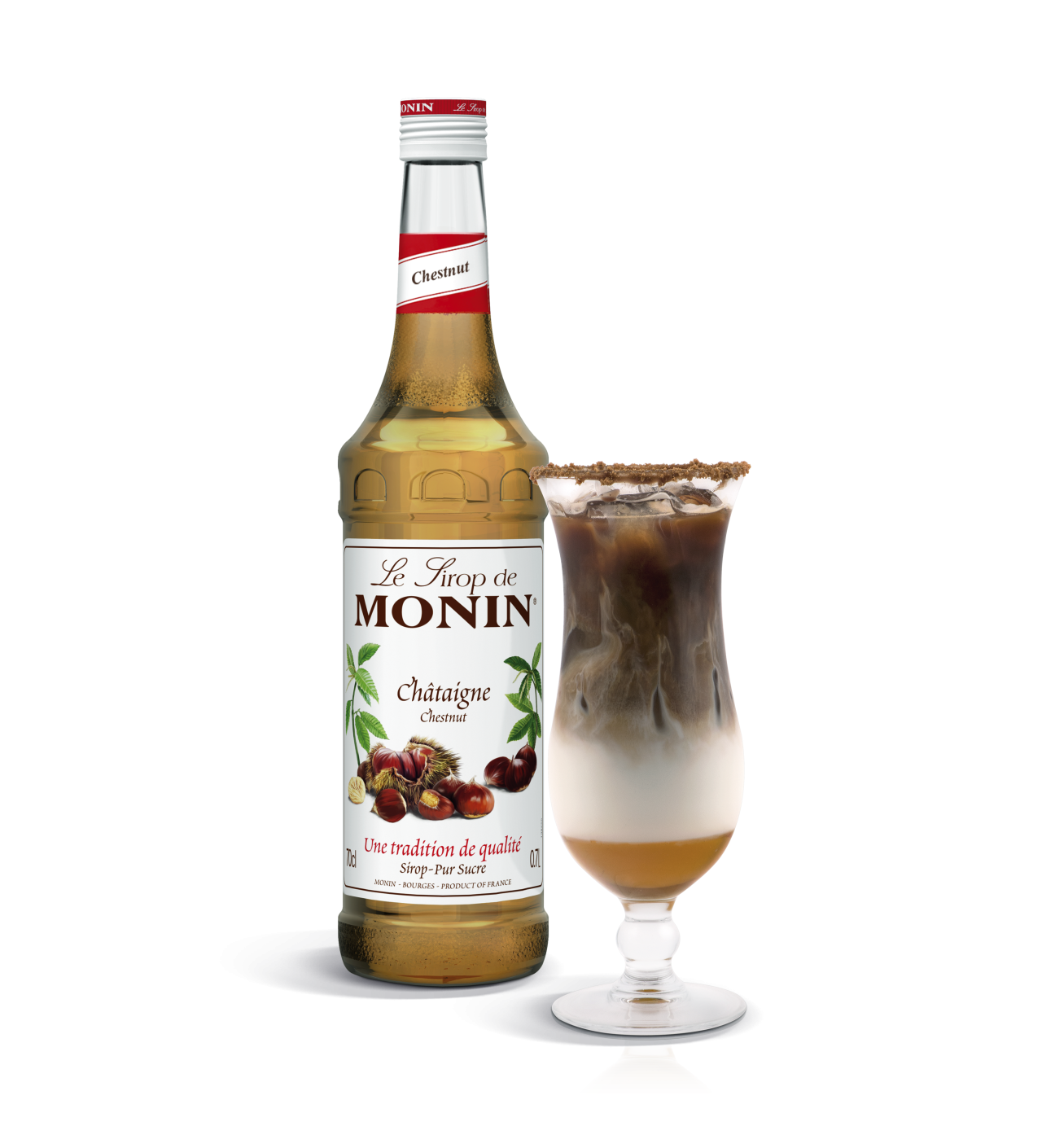 Vous n'avez pas fini de surprendre vos convives avec le sirop châtaigne Monin, que ce soit dans des cafés, frappés, cocktails ou encore chocolats chauds. Le sirop Monin associe le goût de la châtaigne grillée et de la vanille pour trouver un équilibre parfait.