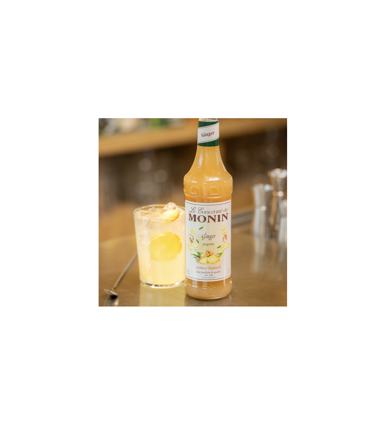 Vous trouverez dans le sirop gingembre Monin le goût caractéristique de cet ingrédient qui habillera vos cocktails et mocktails d’une touche exotique. Le concentré gingembre est un moyen facile et savoureux de rendre vos créations culinaires meilleures. Excellent infusé, ou dans des limonades le sirop de gingembre concentré ne contient que des arômes naturels pour un goût authentique.