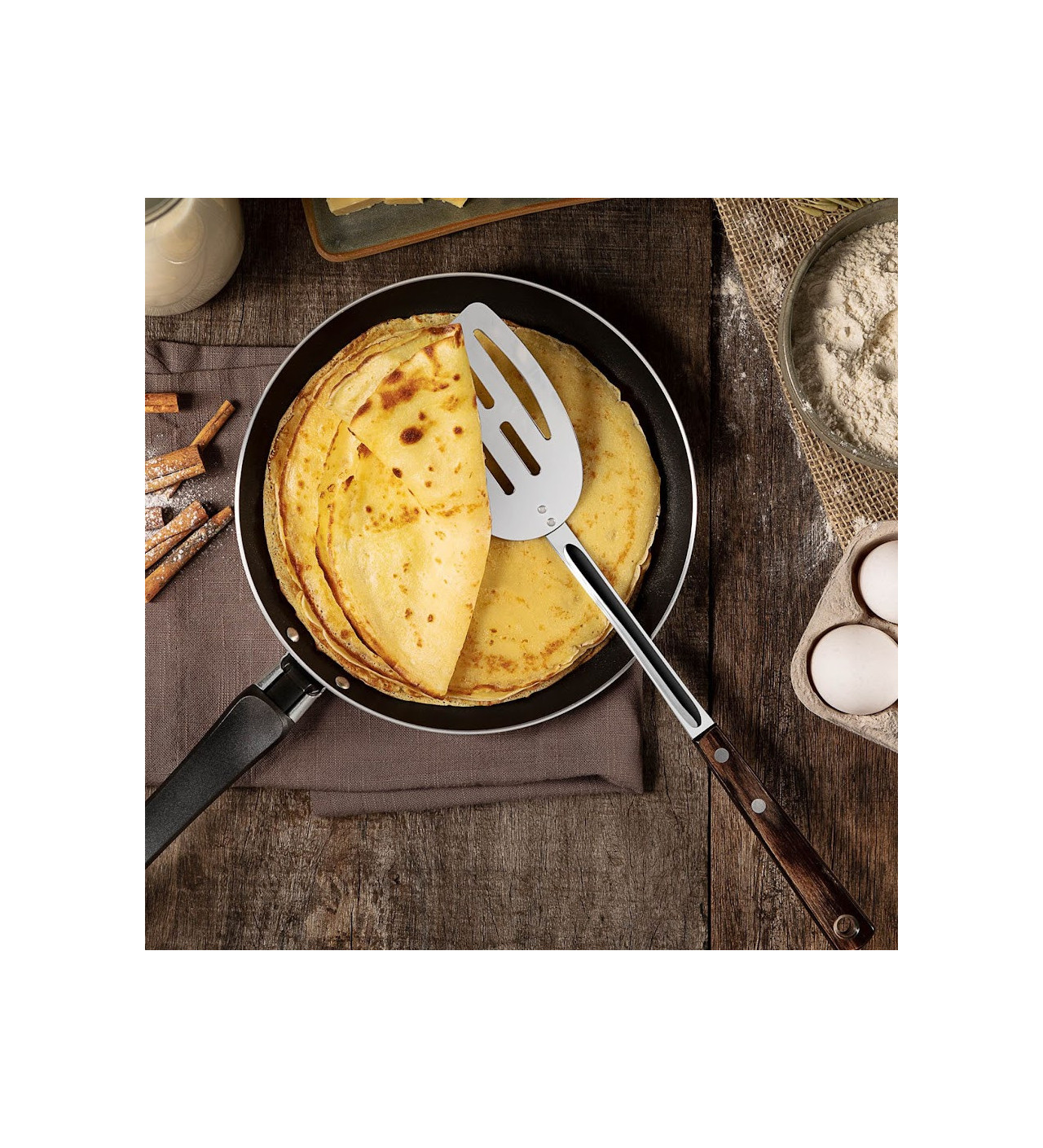Lorsque la viande atteint la cuisson parfaite, que les graisses commencent à brunir et qu’une couleur dorée enveloppe uniformément le morceau, c’est le signe qu’il est temps de saisir votre repas hors des flammes avant que les bonnes saveurs ne s’échappent. Mais pour saisir ce moment précis, il vous faut une spatule de qualité qui préserve la finesse des arômes présents dans la poêle. La spatule Tramontina, avec sa tige en acier inoxydable, est exactement ce qu’il vous faut !