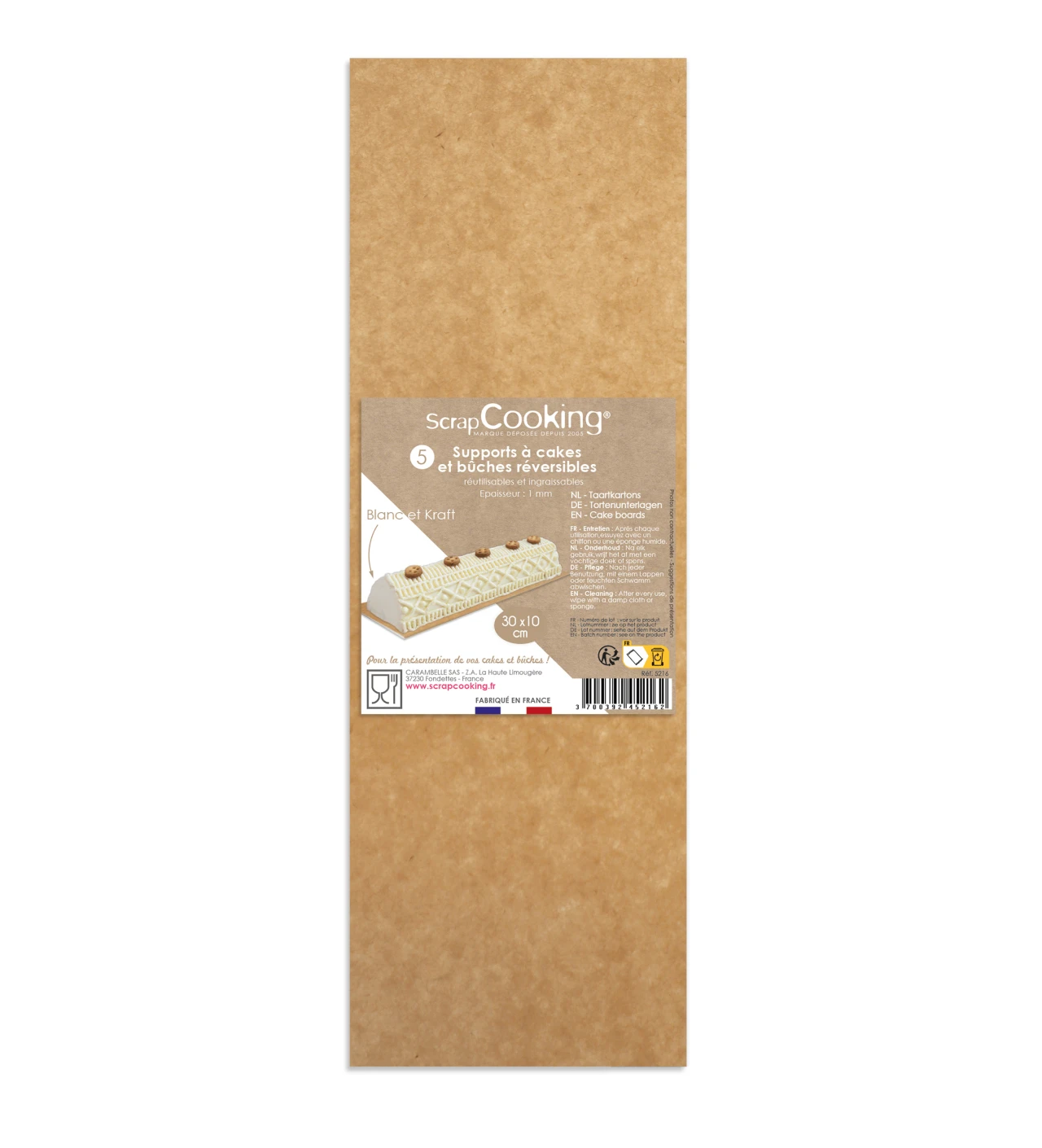 Découvrez les Supports à Gâteaux Kraft et Blanc Rectangle 10 x 30 cm Scrapcooking (x5) qui sont indispensable en pâtisserie !
