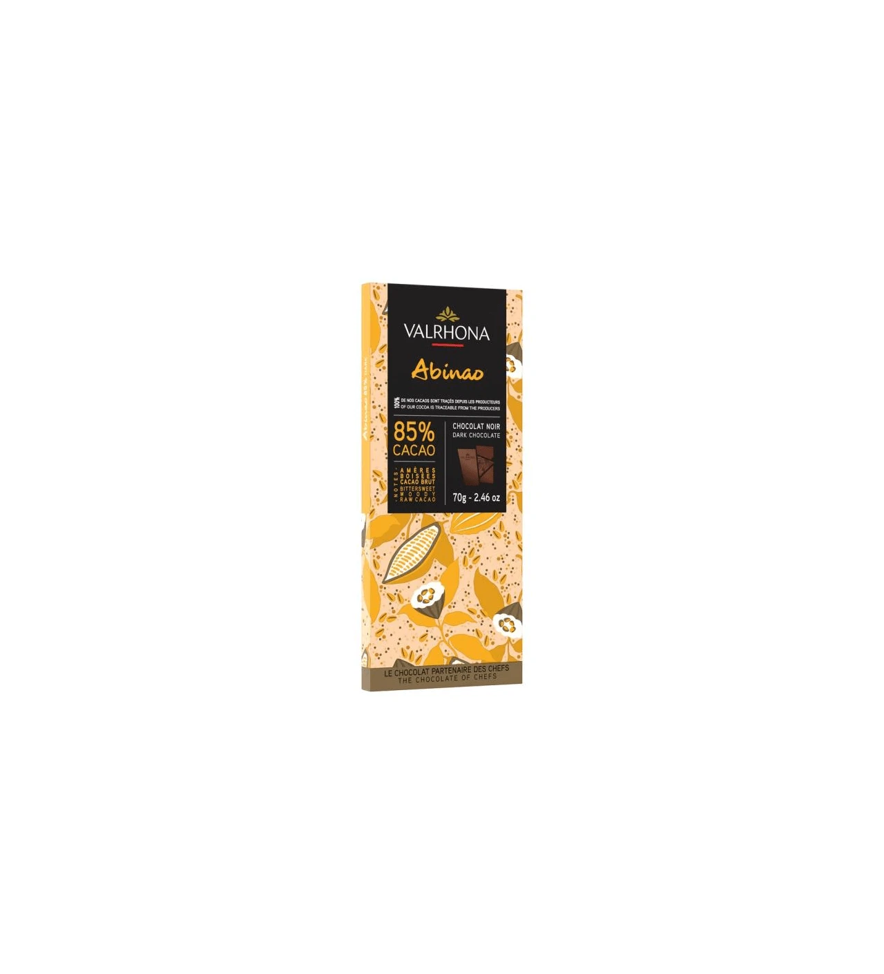 Véritable féru de chocolat noir puissant et intense, la Tablette de Chocolat Noir Abinao 85% 70 g Valrhona est faite pour vous.