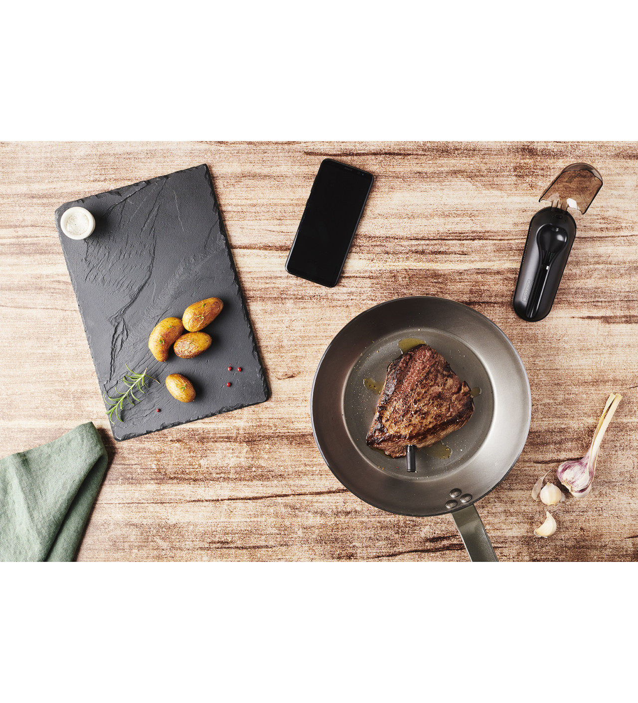 Vous n'arrivez pas à maîtriser la cuisson bleue ou à point et paniquez dès qu'un de vos convives demande une cuisson particulière ? Découvrez le thermomètre de cuisson connecté Meat°It de chez Mastrad qui saura vous aider dans la cuisson de vos viandes ou poissons sans effort de votre part.
