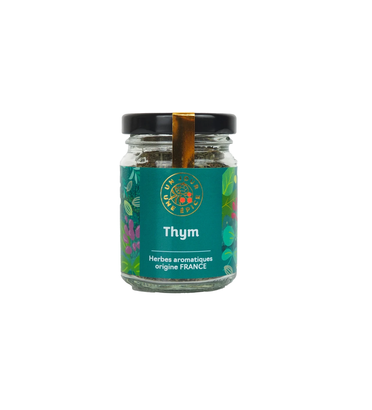 Aromate à la saveur citronnée, le Thym de France Un Jour Une Epice est largement répandu dans la cuisine méditerranéenne. C'est également un ingrédient-phare du bouquet garni.