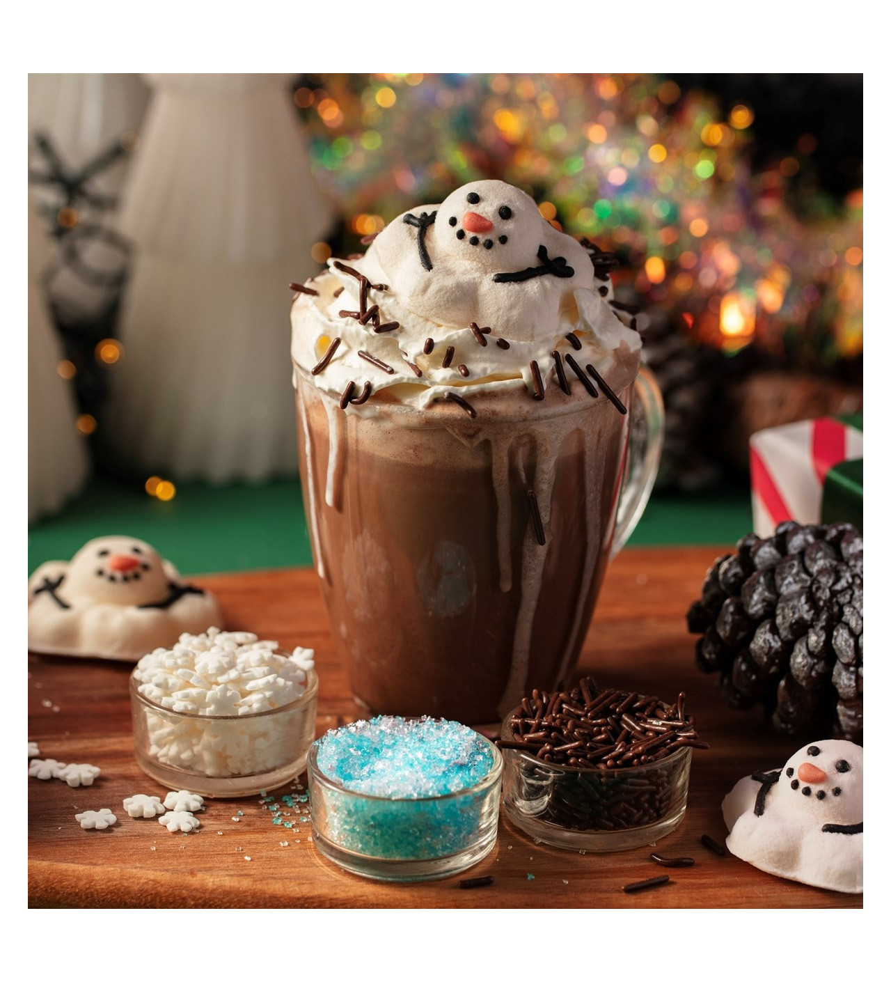 Ce coffret gourmand est parfait pour créer des chocolats chauds festifs et décorer vos bombes chocolat avec style. Ce kit décoration contient tout le nécessaire pour apporter couleur, texture et gourmandise à vos boissons hivernales.