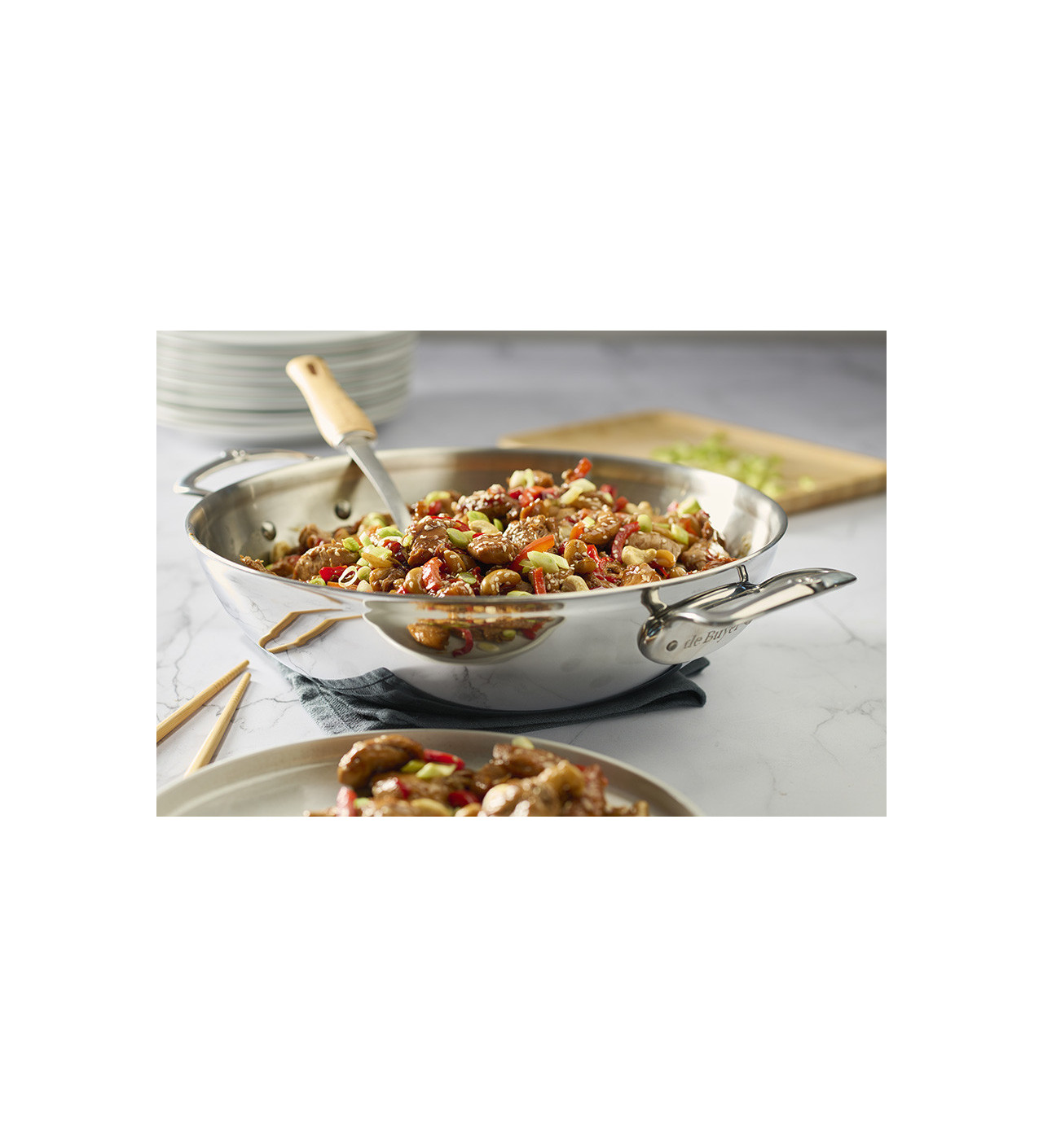 Saisir, griller, frire… Faites sauter les saveurs avec le Wok Inox Bombé 2 Anses Affinity (Collection 2) Ø 32 cm De Buyer.