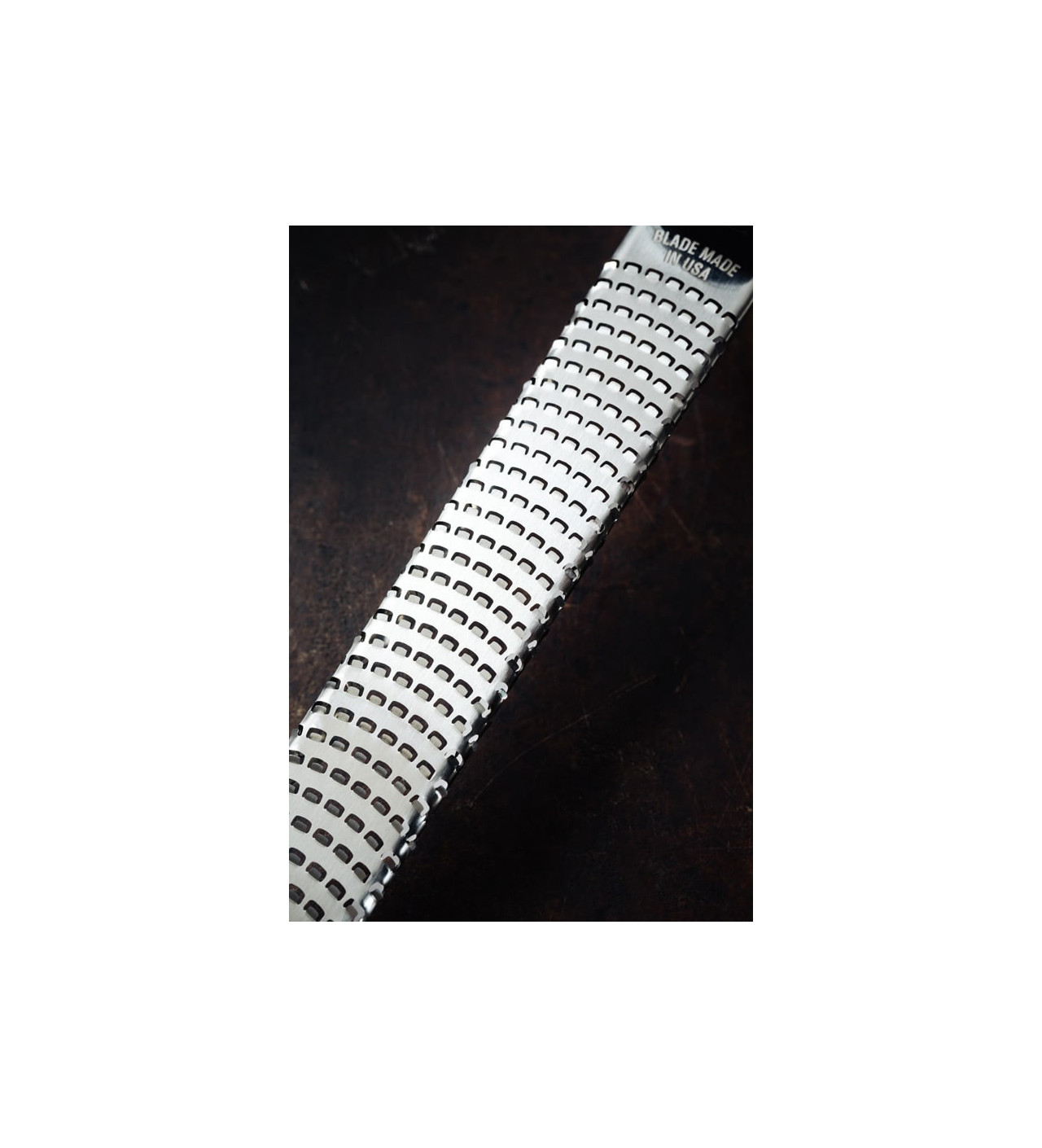 Il est conseillé d’utiliser le zesteur Microplane Premium Classic pour râper des aliments tels que les agrumes, le fromage à pâte dure, le gingembre, le chocolat, la noix de muscade ou encore la truffe.