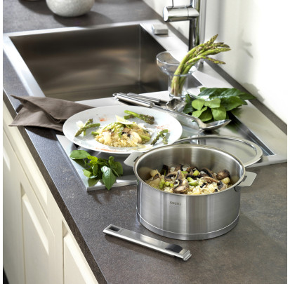 Collections Manche Amovible Cristel - Fondée en 1826, Cristel est une marque française à la solide réputation. Reconnue pour la qualité professionnelle de ses matériels de cuisson en inox, elle est notamment plébiscitée pour ses gammes d’ustensiles de cuisine amovibles. Son savoir-faire, ses innovations, la qualité des mécanismes et des matières utilisées expliquent sans nul doute la notoriété de cette marque française. Découvrez ici trois collections emblématiques Cristel : la Collection Mutine, la Collection Casteline et la Collection Strate. Les lignes épurées de ces casseroles, poêles et faitouts en inox vous accompagneront dans toutes vos recettes. Gain de place et sécurité en cuisine seront en rendez-vous. Faites-vous plaisir en choisissant la couleur du manche ou de l’anse de votre matériel de cuisson. Résistants à la chaleur, clipsables et déclipsables en un instant, ces anses et manches amovibles parachèvent l’excellence de ces collections Cristel.