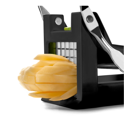 Grâce au coupe frite inox manuel, on va pouvoir obtenir des frites de la même taille. Ce détail n'est pas seulement à des fins esthétiques, il permet d'avoir une cuisson homogène. Ce serait dommage de mordre dans une frite à moitié mollassonne et dure, non ? À noter que plus les frites sont fines, plus elles absorberont la graisse si vous optez pour une cuisson à la friteuse.