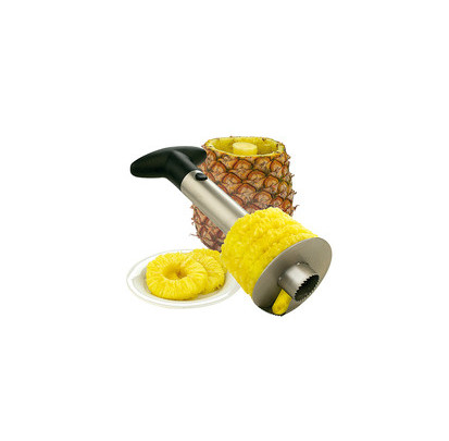 Dans la famille des fruits pénibles à couper, je demande l'ananas ! Mais ça, c'était avant de rencontrer le coupe fruit qui lui est dédié. Aussi bien adapté au professionnel qu'au particulier, le coupe ananas se caractérise par un tube qui se termine par un disque coupant. Après avoir coupé les feuilles de l'ananas, l'ustensile vient se poser dessus. Quelques tours et le fruit est débarrassé de sa peau. Celle-ci reste entière, vous pourrez la réutiliser en y servant une salade de fruits ou une piña colada ! Décliné en version plastique ou en inox, ce dernier modèle de coupe ananas est particulièrement adapté à un usage professionnel.