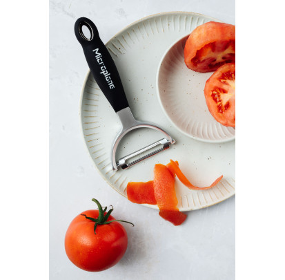 Pour ôter la peau des aliments fragiles, tels que les poivrons, les tomates, les kiwis ou encore les nectarines, rien ne vaut l'efficacité d'un éplucheur légumes à lame dentelée.