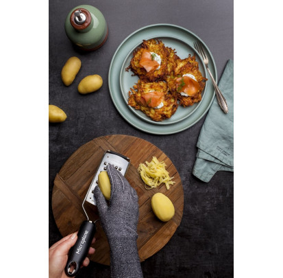 Gant anti coupure : CuisineAddict prend soin de vous avec sa gamme de gants en cotte de mailles et gants anti coupure. Optez pour la protection totale pendant que vous découpez de la viande ou autre chose. Ces gants sont légers, fins, mais surtout offrent une protection contre les coupures. Choisissez votre taille, cotte de maille ou gant anti coupure en textile renforcé. Avec nos gants anti coupure fini les bobos.