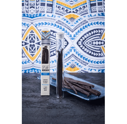 La Gousse de Vanille de Tahiti, aussi appelée Vanille Tahitensis, se distingue de la gousse de vanille Bourbon par de nombreux aspects. Sa robe se veut plus ridée et sa couleur oscille entre de nombreuses nuances de brun plus ou moins mat. Plus large et plus charnue, la palette aromatique de la gousse de vanille de Tahiti est plus odorante et fruitée. En effet, à recette équivalente, un tiers de gousse de vanille de Tahiti est requis contre une gousse de vanille Bourbon. Par son parfum et sa texture, la gousse de vanille de Tahiti est l'épice de prédilection de la cuisine gastronomique.