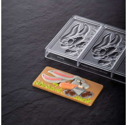 Moule lapin Pâques – Répandant le bonheur en semant des petits œufs dans le jardin, il est sans conteste l’un des héros de cette fête : le lapin de Pâques. Alors, pour le mettre à l’honneur, que direz-vous de réaliser des moulages en chocolat à son effigie ? Lapin en chocolat tantôt farceur, rieur, classique ou décalé, il sait se renouveler ! Découvrez les moules lapin chocolat polycarbonate, les moules lapin silicone, tritan ou encore plastique de nombreuses marques utilisées par les professionnels de la chocolaterie. Que vous soyez maître en tempérage ou jeune padawan, vous réaliserez grâce à eux des lapins de Pâques en chocolat que tous voudront goûter !