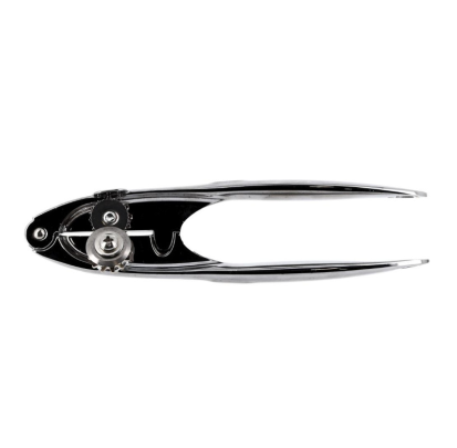 Le second modèle d'ouvre-boîte manuel dispose de deux lames : une crantée, une autre lisse. Les deux vont venir pincer le rebord de la pince. Il suffit alors de tourner la molette pour l'ouvrir. L'ouvre-boîte manuel à deux lames peut se présenter sous forme de pince ou d'un bouton immobile sur lequel la main va se reposer afin de fermer les deux lames autour de la boîte.