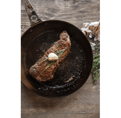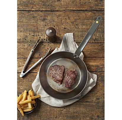 Poêles en Tôle d'Acier, Fer – Sa couleur, son poids, sa qualité de cuisson, nous voilà en présence d’une poêle pas comme les autres. La poêle en tôle d'acier ou en fer est l’arme secrète des chefs cuisiniers et désormais également la vôtre ! La poêle en tôle est en réalité LA poêle incontournable pour saisir, dorer, griller vos aliments. Elle vous offre une cuisson des viandes parfaites et pleine de gourmandise. Découvrez ce trésor de la cuisine, apprenez à en maîtriser les subtilités puis régalez-vous au travers d’innombrables recettes savoureuses.