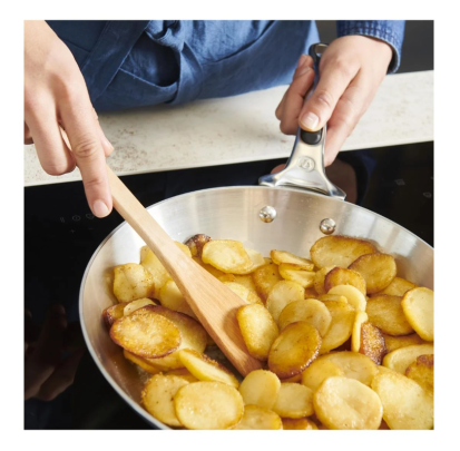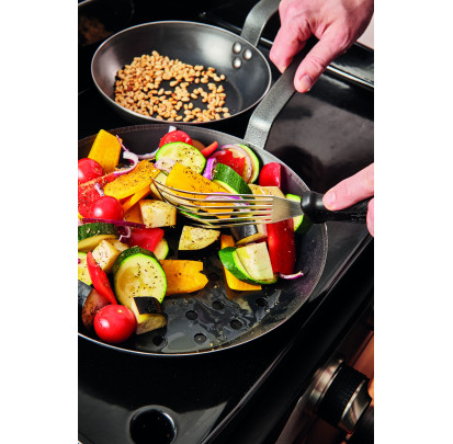 Pouvant être chauffée à des températures supérieures à 140 °C, la poêle en tôle d'acier provoque rapidement la réaction de Maillard. Les aliments sont saisis en surface grâce à la caramélisation de leurs sucs naturels. Une croûte se forme, empêchant l'humidité de s'évaporer. L’aliment reste ainsi tendre. Autrement dit, grâce à la poêle en acier professionnelle, les aliments sont dorés et croustillants en surface, fondants et moelleux à l'intérieur.