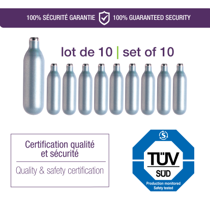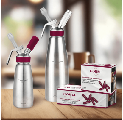 Découvrez aussi nos siphons à eau de Seltz servant aux boissons gazeuses (des cartouches spécifiques sont nécessaires pour ces modèles et leur utilisation).