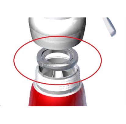 Une fois votre mélange réalisé et filtré, versez-le dans le siphon de pâtisserie. Un entonnoir peut ici être utile. Il existe d’ailleurs des entonnoirs permettant de filtrer simultanément les préparations, afin de gagner en temps et manipulations. Veillez à ne pas dépasser le repère « MAX » du siphon à pâtisserie. En effet, il faut prendre en compte que le gaz injecté dans la bouteille va augmenter le volume de votre préparation, qui aura donc besoin de plus d'espace. Vous pouvez ensuite visser la tête du siphon à mousse, en n’oubliant pas d’y placer un joint d'étanchéité. La douille doit également être correctement positionnée avant de visser la tête avec soin.