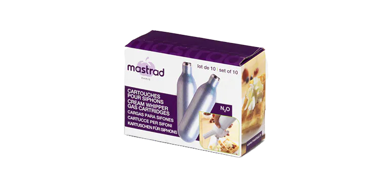 Réalisez des mousses chaudes ou froides en toute simplicité avec ces cartouches pour Siphon. Les cartouches N20 sont compatibles avec les siphons de la marque Mastrad. La boîte est composée de 10 unités.