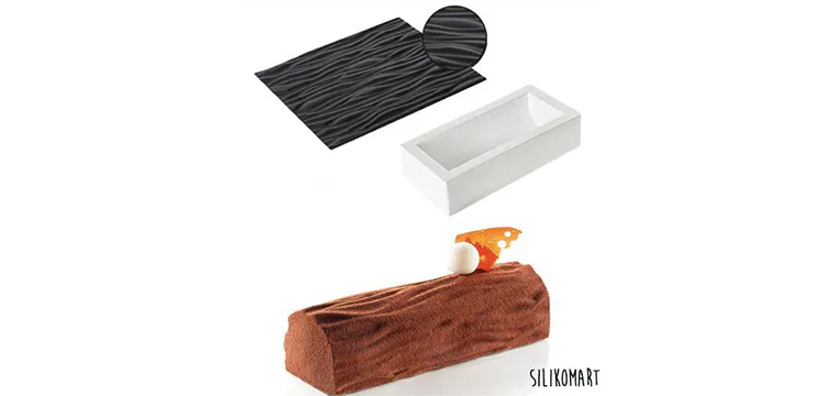 Ici, le moule à bûche Arabesque en silicone est accompagné d’un tapis qui se dépose sur le fond. Au moment du démoulage, votre bûche de Noël sera ornée d’un élégant motif arabesque ou effet bois si vous souhaitez garder une touche de tradition !