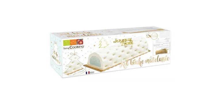 On le voit depuis quelques années mais son succès ne faiblit pas, le Kit Bûche de Noël effet matelassé s’inscrit toujours dans la tendance ! Dans la boîte vous découvrirez un moule à bûche, un insert, une feuille matelassée et deux semelles à bûches réutilisables.
