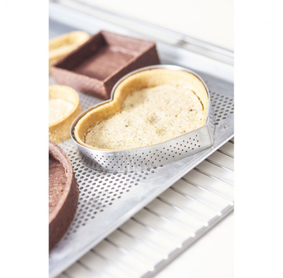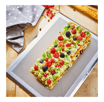 Vous trouverez également des plaques de cuisson four spécialement conçues pour favoriser la circulation de l’air. Il s’agit des plaques de cuisson perforées. Notez que si vous préparez une pâte liquide, il faudra ici associer la plaque de four à une feuille de cuisson ou à un tapis de cuisson. C’est d’ailleurs là une association particulièrement utile pour les pâtes délicates.