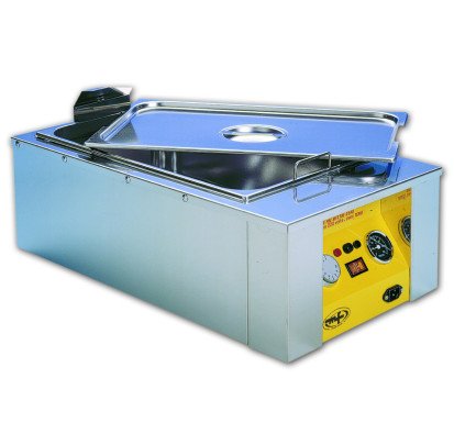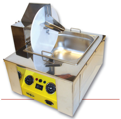 Cet appareil électrique fonctionne à air ou à eau et agit comme un bain-marie amélioré. Le chocolat est maintenu à juste température dans la cuve (entre 28 et 32°C, selon le chocolat choisi), sans que vous n’ayez besoin de relancer une cuisson ou un refroidissement. Vous choisissez grâce au thermostat la température souhaitée et vous n’avez plus à vous en soucier. L’isolation thermique de cet appareil est étudiée pour un travail sans accroc du chocolat. En effet, les cuves de ces outils pro sont en acier inoxydable pour maximiser la performance des tempéreuses.